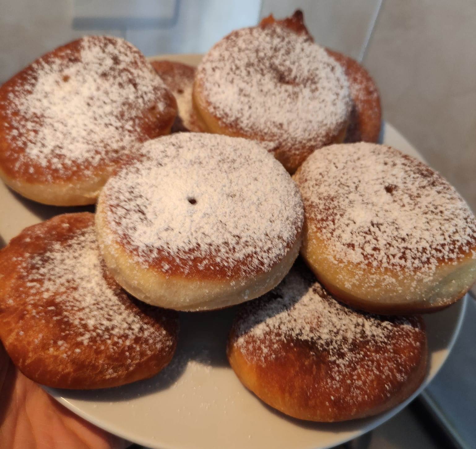 και τα τηγανίζουμε 4-4 σε χαμηλή φωτιά μέχρι να ροδίσουν και από τις δύο πλευρές μετά πασπαλίζουμε με ζάχαρη άχνη βανίλια και απολαύστε τα 🤤❤️