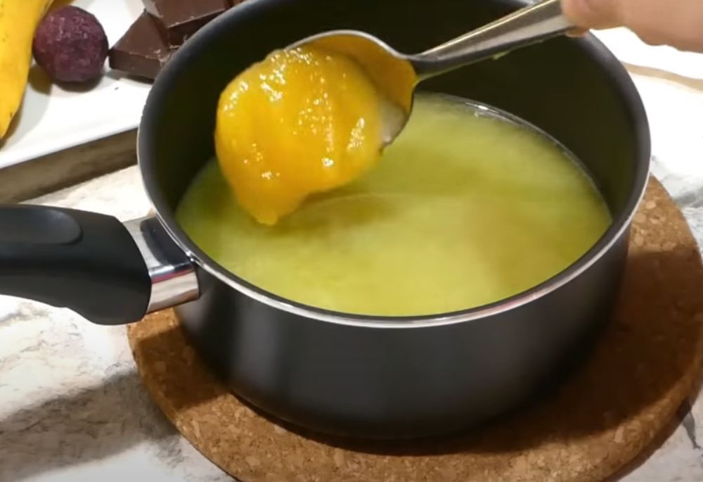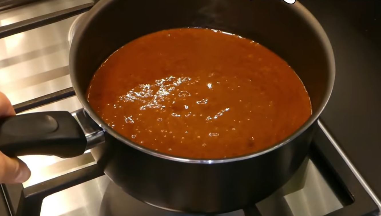 Ρίχνουμε το μείγμα σε ένα μικρό κατσαρολάκι βάζουμε να βράσει σε χαμηλή φωτιά για περίπου 10 λεπτά.
