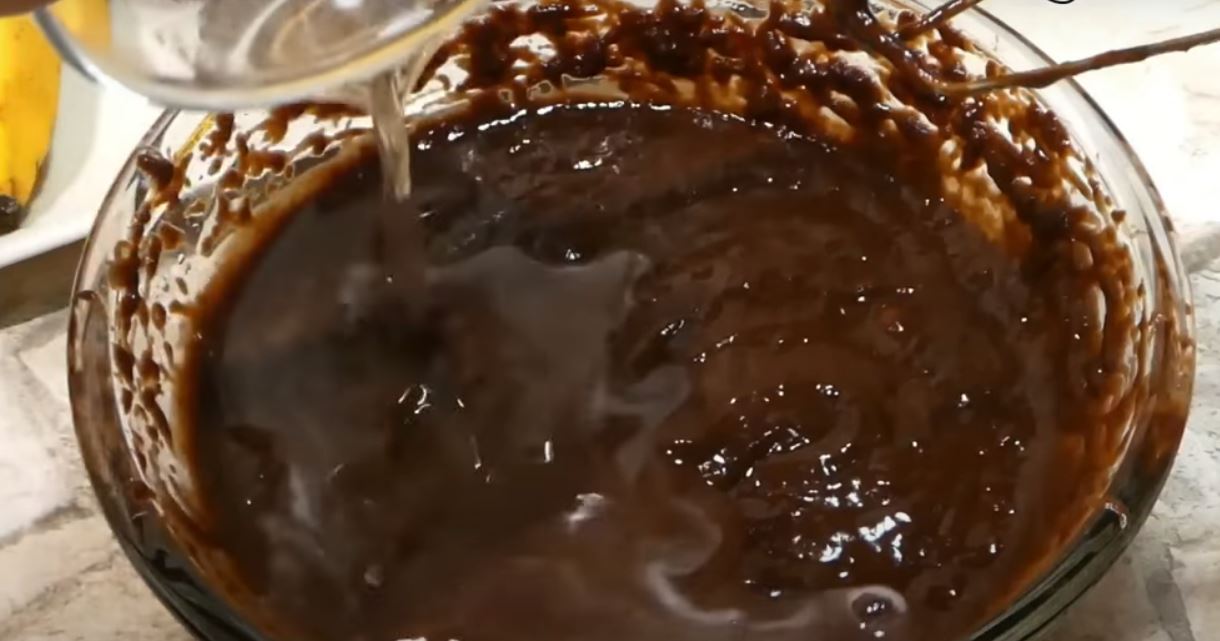 Σβήνουμε τη φωτιά και προσθέτουμε τη σοκολάτα. Ανακατεύουμε μέχρι να λιώσει. Αδειάζουμε το μείγμα σε ένα μπολ το σκεπάζουμε και το αφήνουμε να κρυώσει.