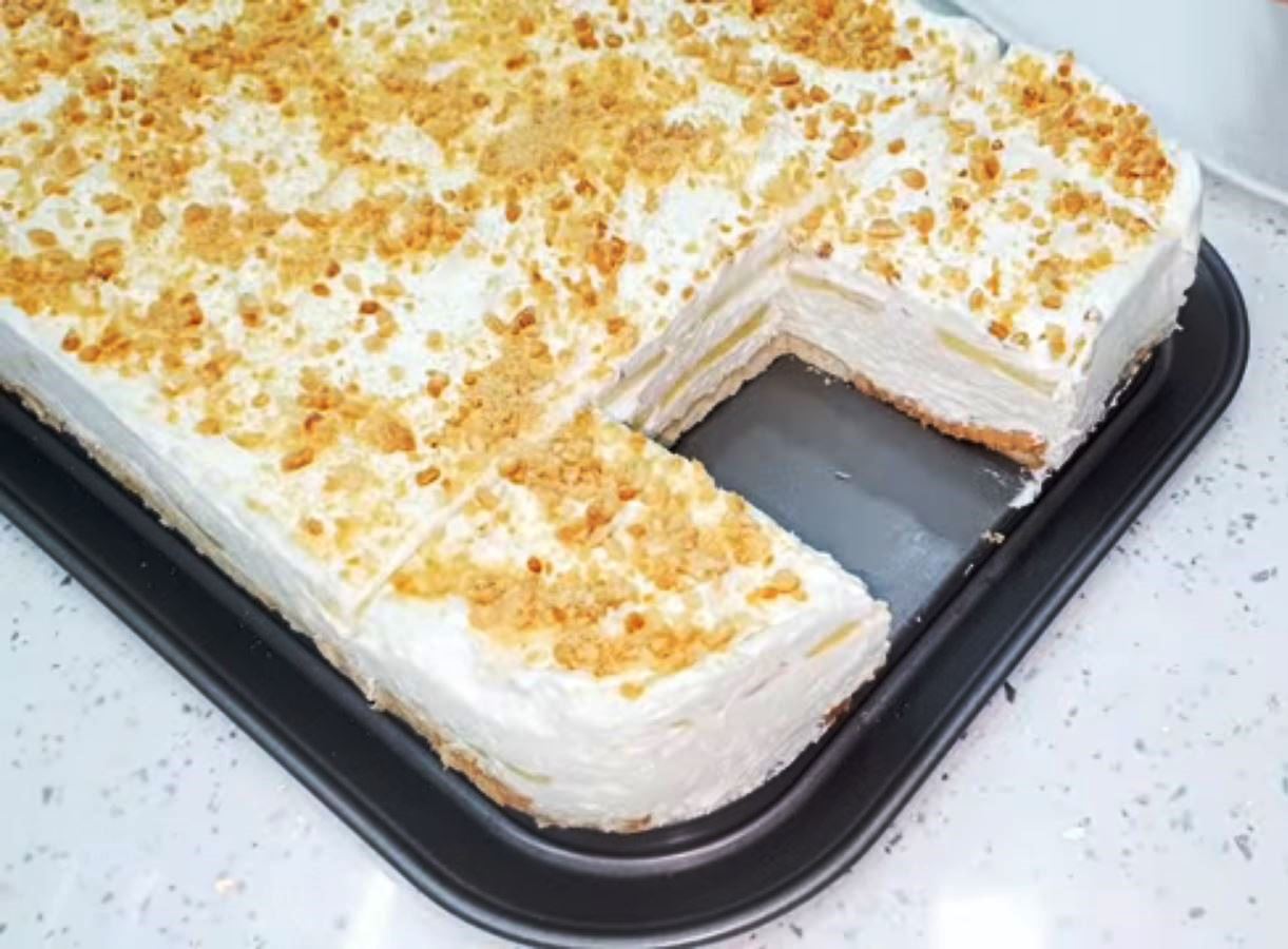 Σε ένα ταψί με αποσπώμενη βάση στρώστε στη βάση τα μπισκότα αφού τα βυθίσετε σε λίγο γάλα ή χυμό για να τα κάνετε μαλακά μετα σαντιγί – ανανα – σαντιγί- ανανα – σαντιγί.