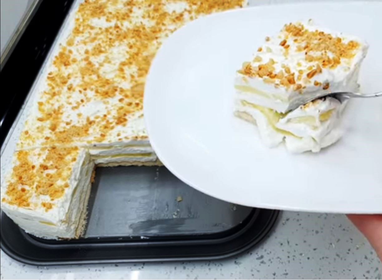 Σε ένα ταψί με αποσπώμενη βάση στρώστε στη βάση τα μπισκότα αφού τα βυθίσετε σε λίγο γάλα ή χυμό για να τα κάνετε μαλακά μετα σαντιγί – ανανα – σαντιγί- ανανα – σαντιγί.