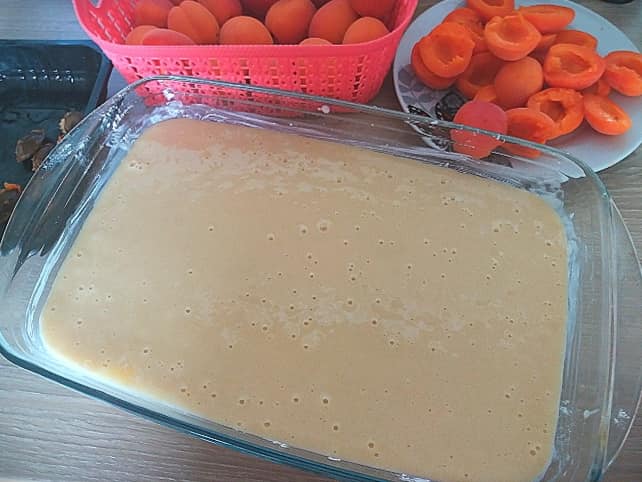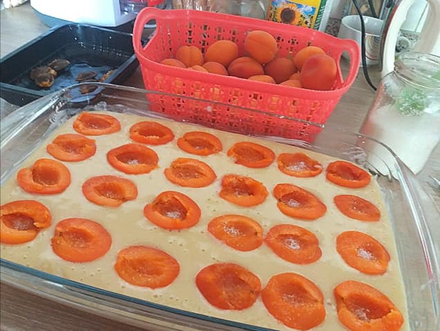 Τακτοποιήστε τα βερύκοκα στην ζύμη με το κομμένο μέρος στραμμένο προς τα πάνω.