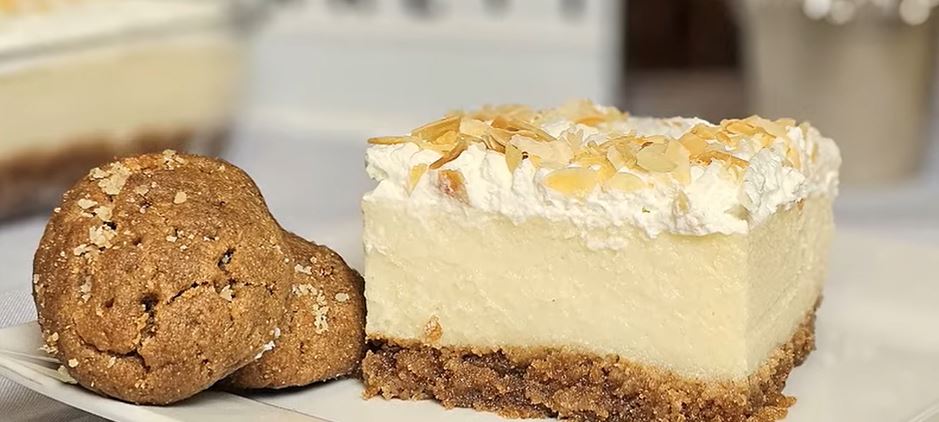 Eπίσης έχω καστανήσει αμύγδαλο φιλέ που ταιριάζει απόλυτα με το εκμέκ και πασπαλίζω όλη την επιφάνεια του.