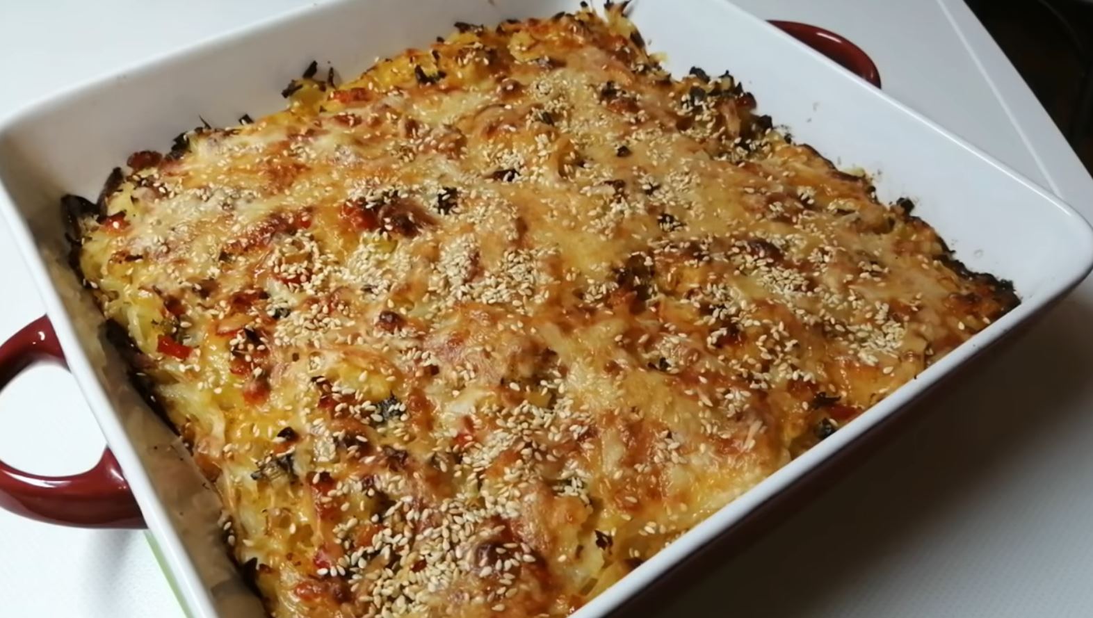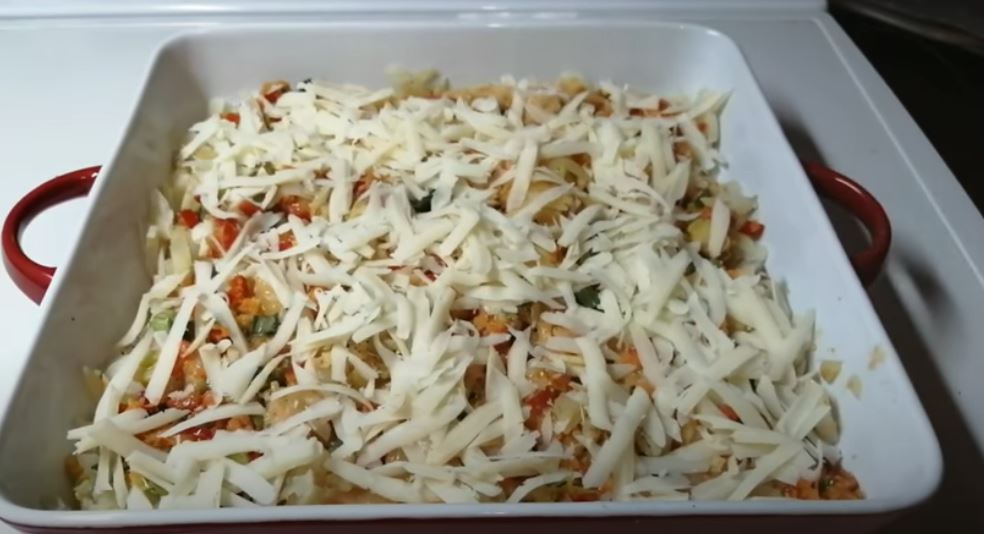 Από πάνω τρίβουμε το τυρί, πασπαλίζουμε με το σουσάμι