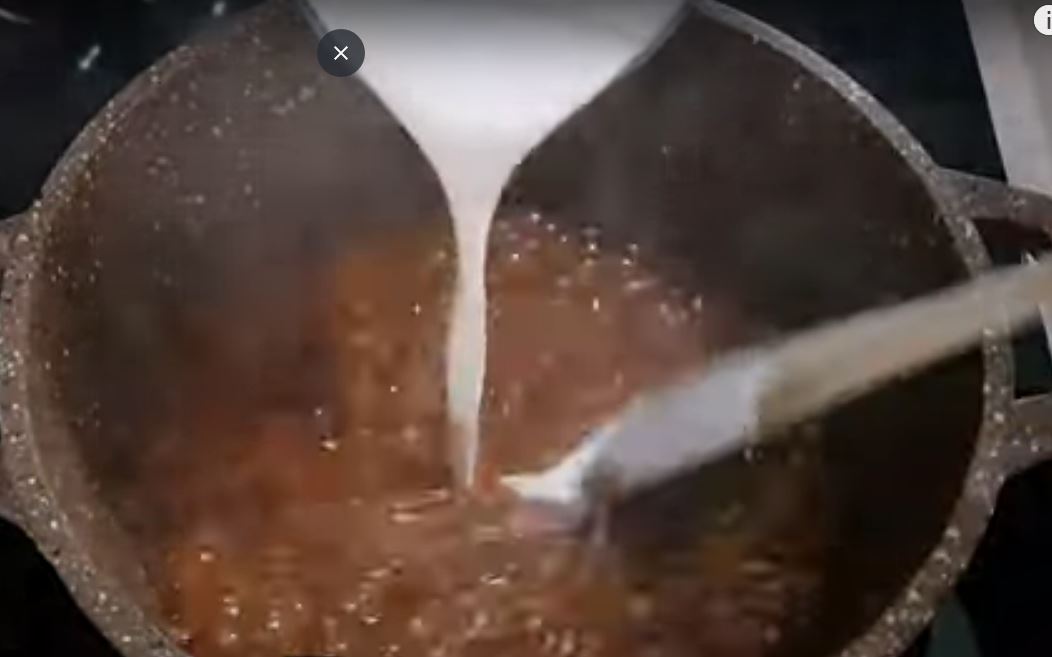 Οταν η καραμέλα αρχίζει να αφρίζει ρίχνουμε μέσα την κρέμα γάλακτος σιγα σιγα σε ροή