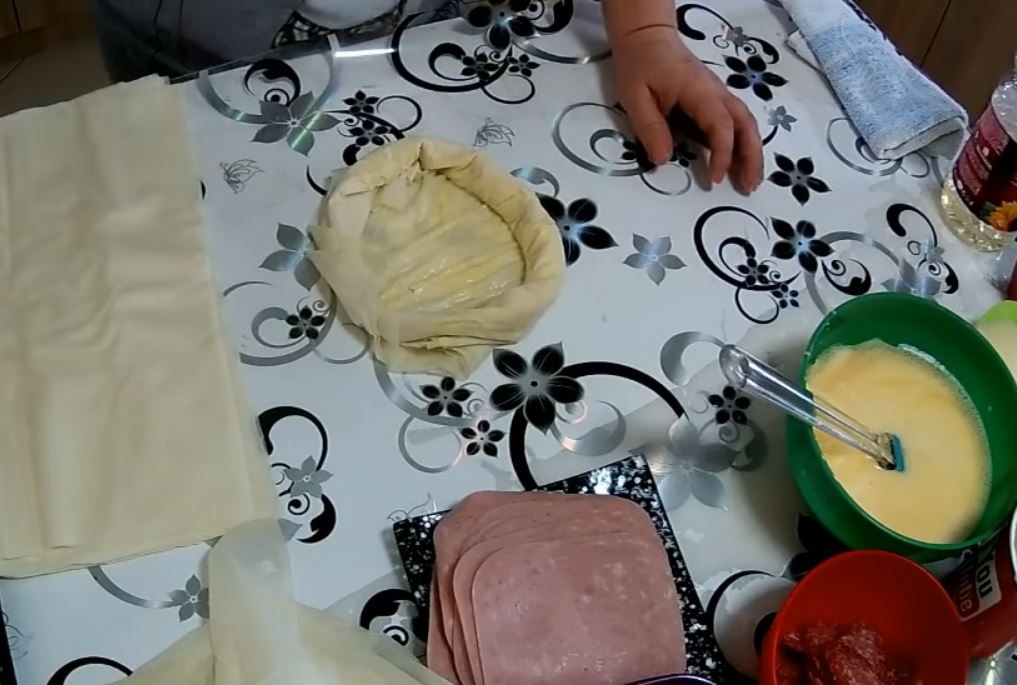 Σχηματίζουμε φωλιές πίτσες όπως βλέπετε στις φωτο και μόλις φτιάξετε την φωλιά βουτατε ένα φύλλο μέσα στο μείγμα και το στρώνετε στην βάση της φωλιάς. (Δείτε φωτό)