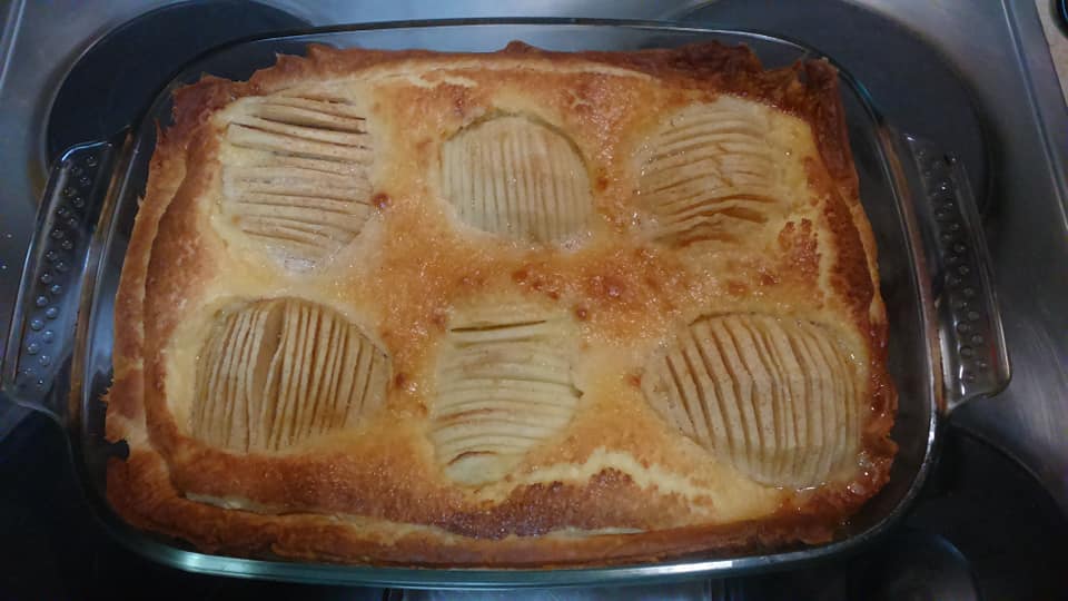 I made this APPLE PIE WITH VANILLA CUSTARD. It’s originally a French recipe – but I made it in my kitchen in Athens, so it counts I hope, lol 😉😋😁😁. I saw this recipe on Facebook and I had to try it, just for the simplicity. But I made some changes …. So, here is MY VERSION