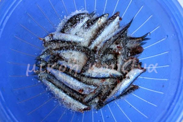 Αφού τα καθαρίσουμε όλα, τα αραδιάζουμε σε τρυπητό, στο οποίο από κάτω θα πρέπει να υπάρχει άλλο μπωλ. Τοποθετούμε τα ψάρια και πασπαλίζουμε καλά με αλάτι. Βάζουμε στρώματα ψαριών και αλατιού μέχρι να τελειώσουν τα ψάρια.