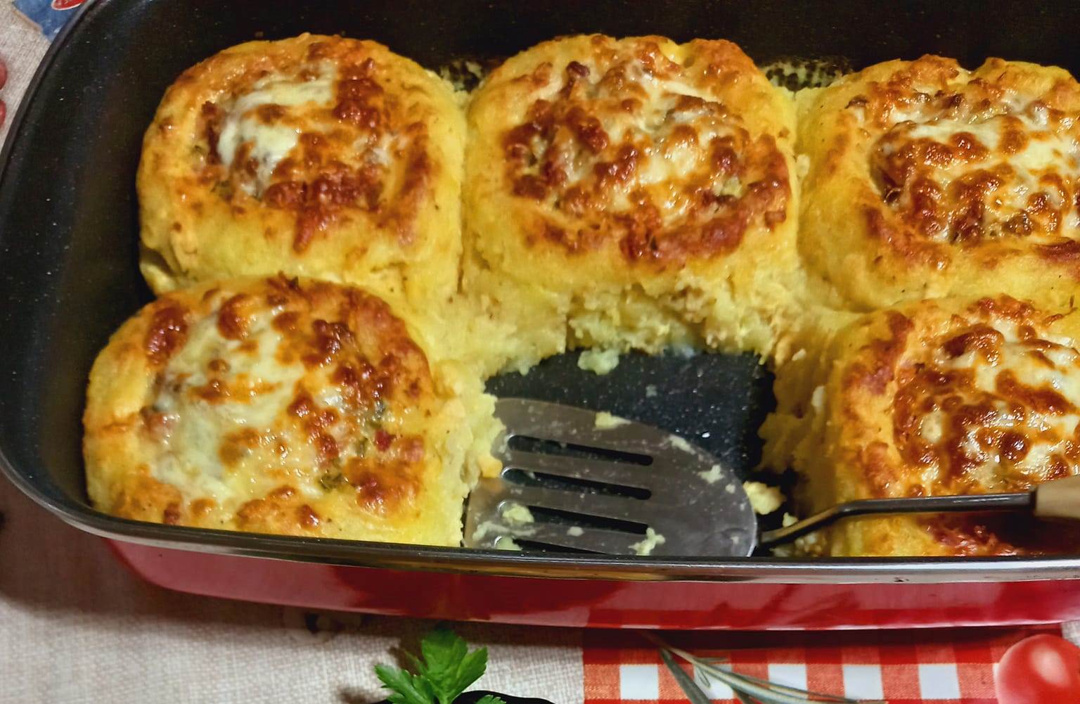 Γεμιστές Φωλιές Πατάτας, ιδανική για ορεκτικό ή κυρίως πιάτο. Η τραγανή κρούστα από πουρέ πατάτας αγκαλιάζει μια πλούσια γέμιση της επιλογής σας, δημιουργώντας ένα πιάτο που θα ενθουσιάσει μικρούς και μεγάλους.