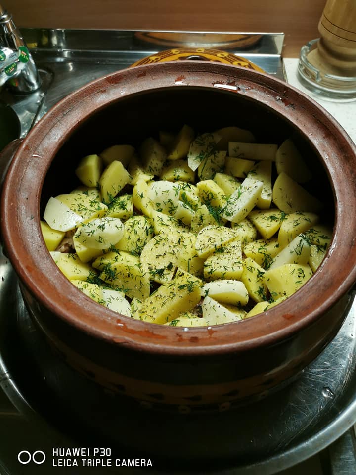 Δεύτερη σειρά πατάτες, τις οποίες πασπάλισα με αλάτι, άνηθο, χωρίς ανακάτεμα.