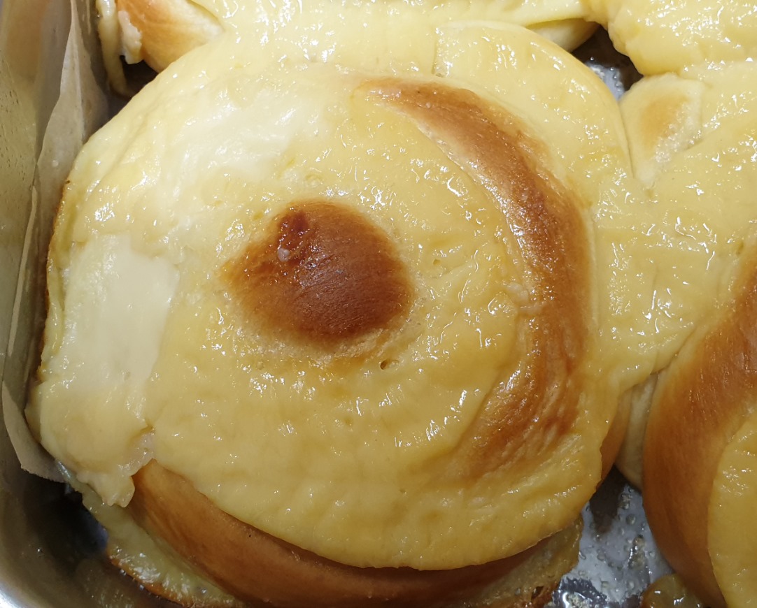 Τα ψωμάκια δεν είναι πολύ γλυκά και το μεγαλύτερο μέρος της γλυκύτητας προέρχεται από την κρέμα.