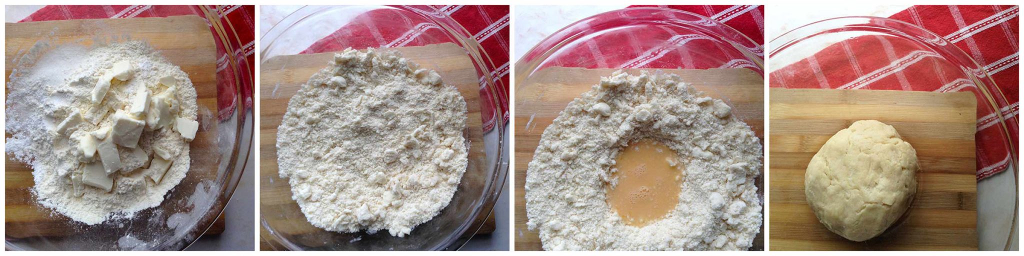 Προσθέστε το παγωμένο νερό και το χτυπημένο αυγό στο μείγμα αλευριού και ανακατέψτε για να σχηματίσουν μια μαλακή ζύμη.