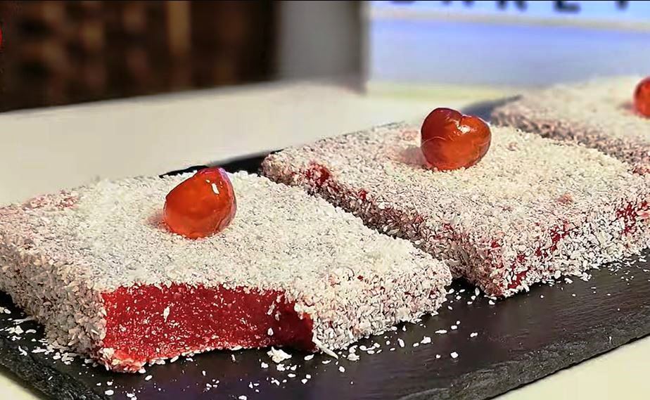Την επόμενη ημέρα ξεφορμάρουμε το ταψάκι και με ένα μαχαίρι κόβουμε μερίδες της επιλογής μας περνάμε την κρέμα από καρύδα
