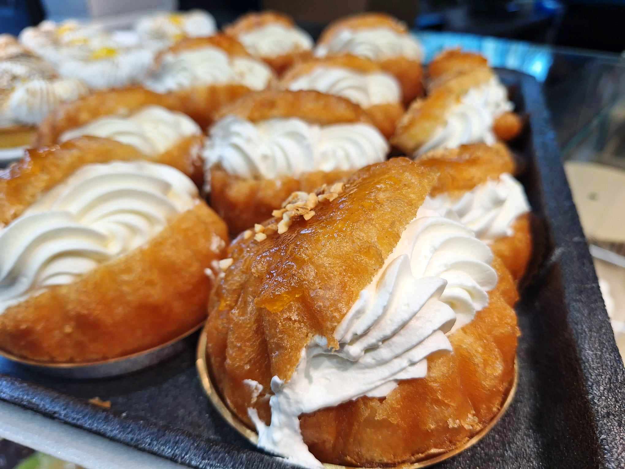 Γεμίζουμε τη βάση του μπαμπά με την κρέμα χρησιμοποιώντας κορνέ για να δώσουμε ωραιότερο σχήμα.