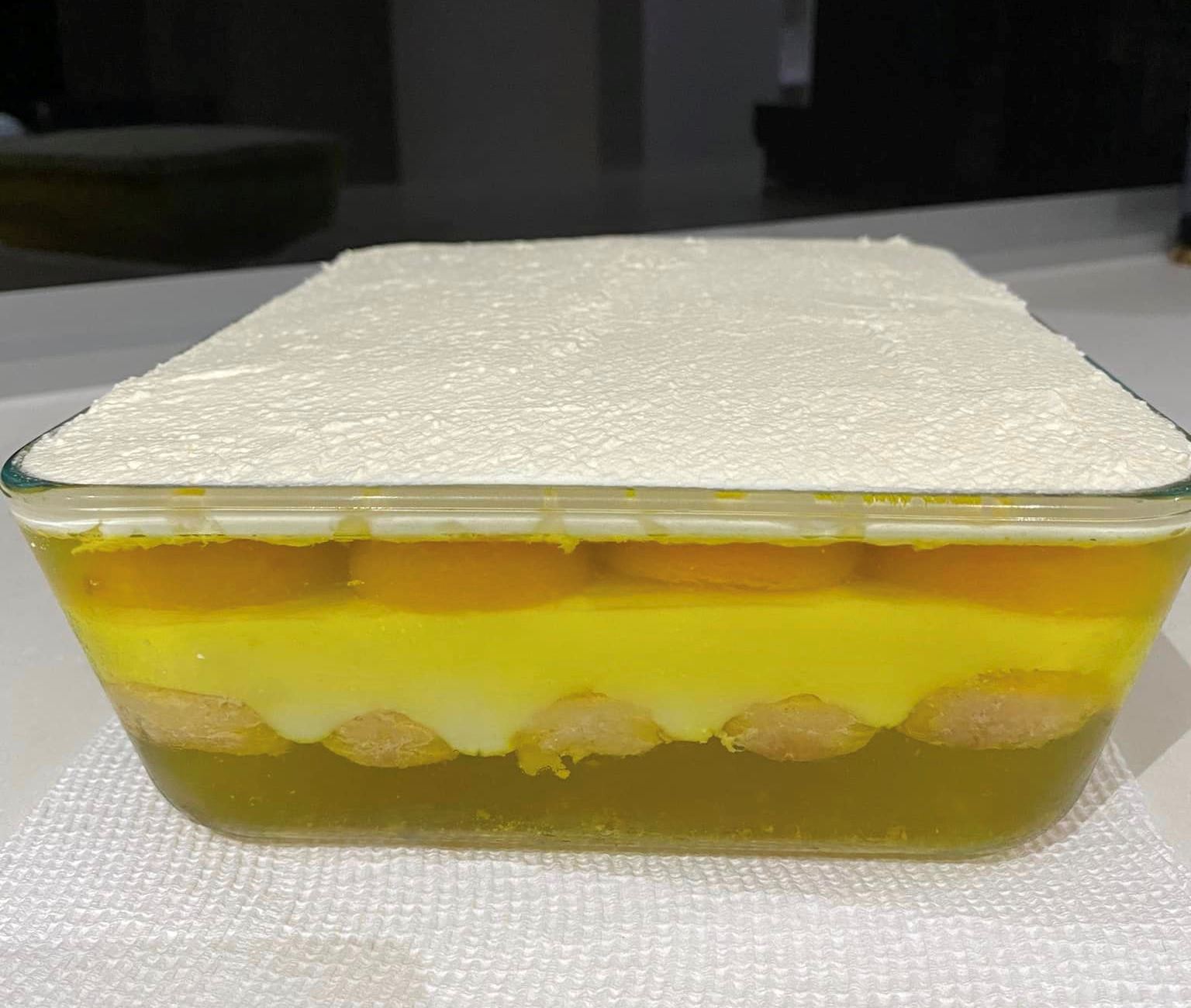 Φτιάξτε το άλλο πακέτο ζελέ λεμονιού και ρίξτε το πάνω από τη στρώση βερίκοκου, επιστρέψτε στο ψυγείο και αφήστε το ζελέ να σταθεροποιηθεί εντελώς.