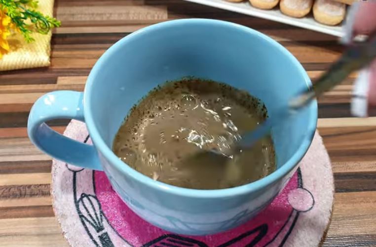 Σ ένα μπολ ανακατεύουμε τα 3 κουταλάκια του καφέ με τα 3 κουταλάκια της ζάχαρης. Προσθέτουμε το γάλα και ανακατεύουμε καλά να λιώσει η ζάχαρη.