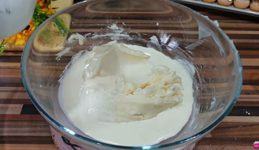 Ανακατεύουμε πολύ καλά το μασκαρπόνε με την ζάχαρη άχνη προσθέτουμε την κρέμα γάλακτος και χτυπάμε με το μίξερ να ομογενοποιηθεί και ν αφρατέψει το μείγμα μας.