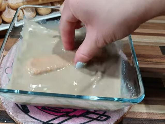 Στη συνέχεια βρέχουμε τα σαβουαγιάρ μας και τα στρώνουμε σε ταψί 20Χ30.
