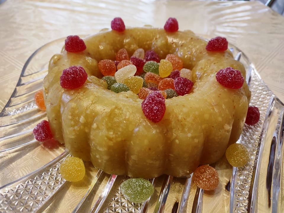 Το αφήνουμε να κρυώσει και το αναποδογυρίζουμε σε μια πιατέλα.
