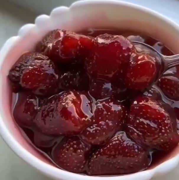 Σκεπάζω την κατσαρόλα και την αφήνω στο ψυγείο για μια νύχτα, για να βγάλουν οι φράουλες τα υγρά τους.