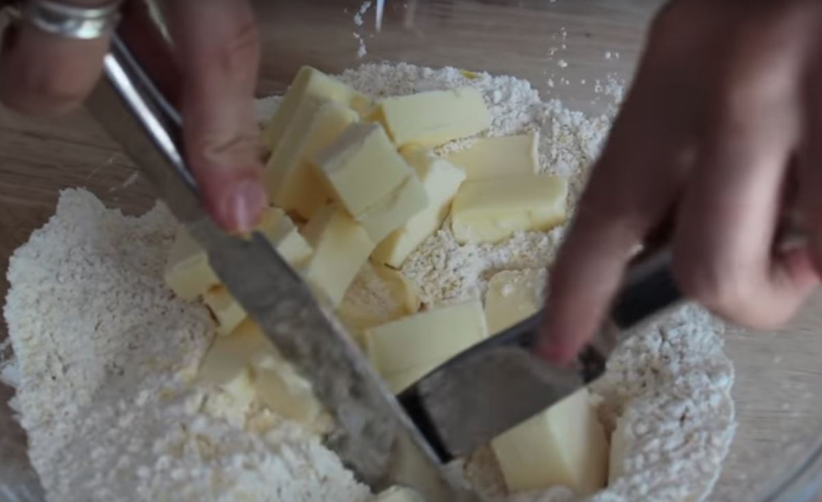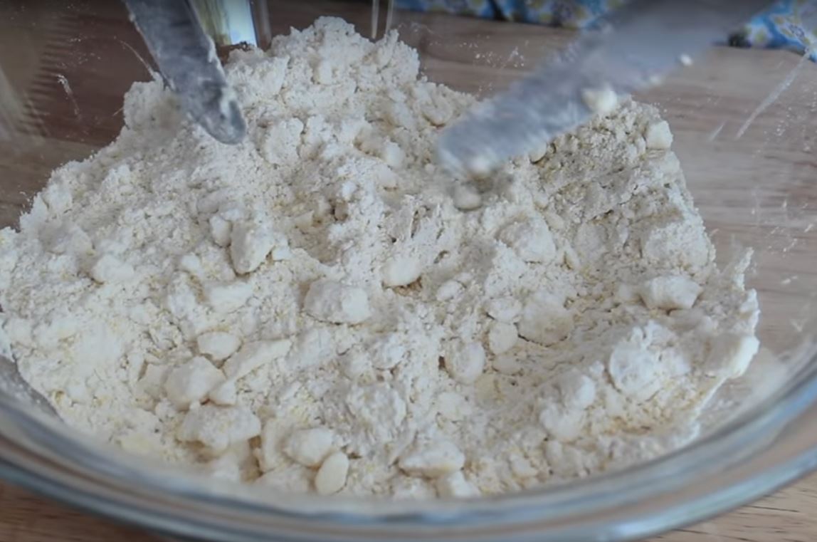 Σε ένα μεγάλο μπολ, ανακατέψτε το αλεύρι, 1/2 φλιτζάνι ζάχαρη και αλάτι. Κόψτε και ρίξτε μέσα 1 φλιτζάνι μαργαρίνη και με 2 μαχαιρια τεμαχιστε το μέχρι το μείγμα να μοιάζει να έχει χοντρά ψίχουλα.
