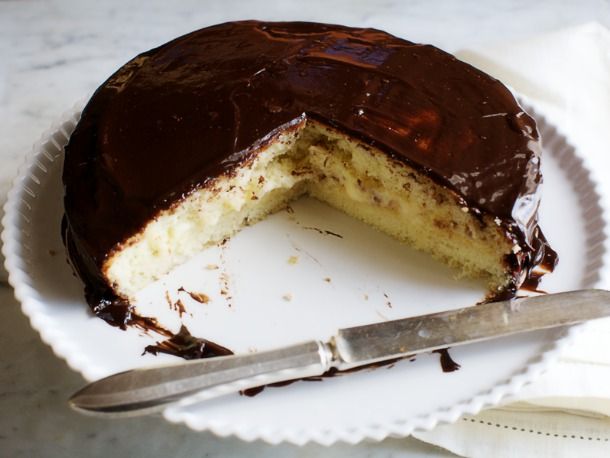 (αφήστε το μισό κάτω στο πιάτο). Απλώστε στο κάτω μισό την Κρέμα Ζαχαροπλαστικής σε απόσταση 1.5εκ από την άκρη. Τοποθετήστε απαλά το άλλο μισο του κέικ από πάνω σε στρώμα πουτίγκας.