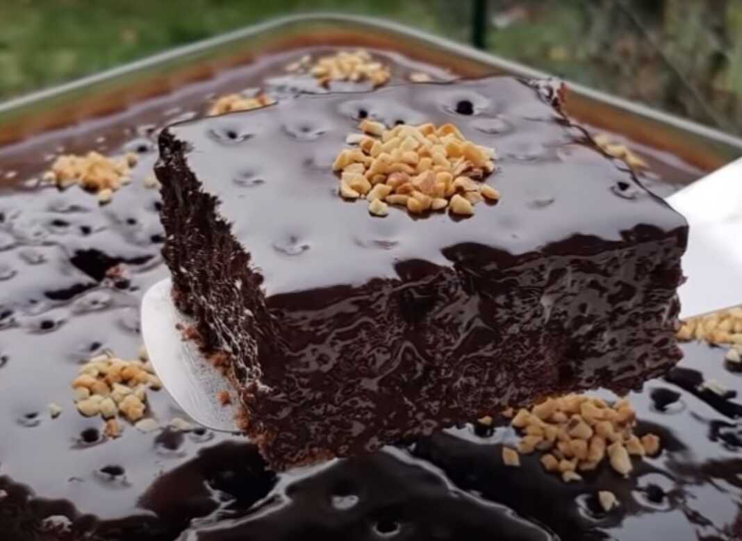 Μην παραλείψετε να τρυπήσετε την πίτα αμέσως μόλις βγει από τον φούρνο, ώστε να απορροφήσει ομοιόμορφα το πλούσιο σοκολατένιο σιρόπι. Αυτό είναι το μυστικό για ζουμερή Σοκολατόπιτα.