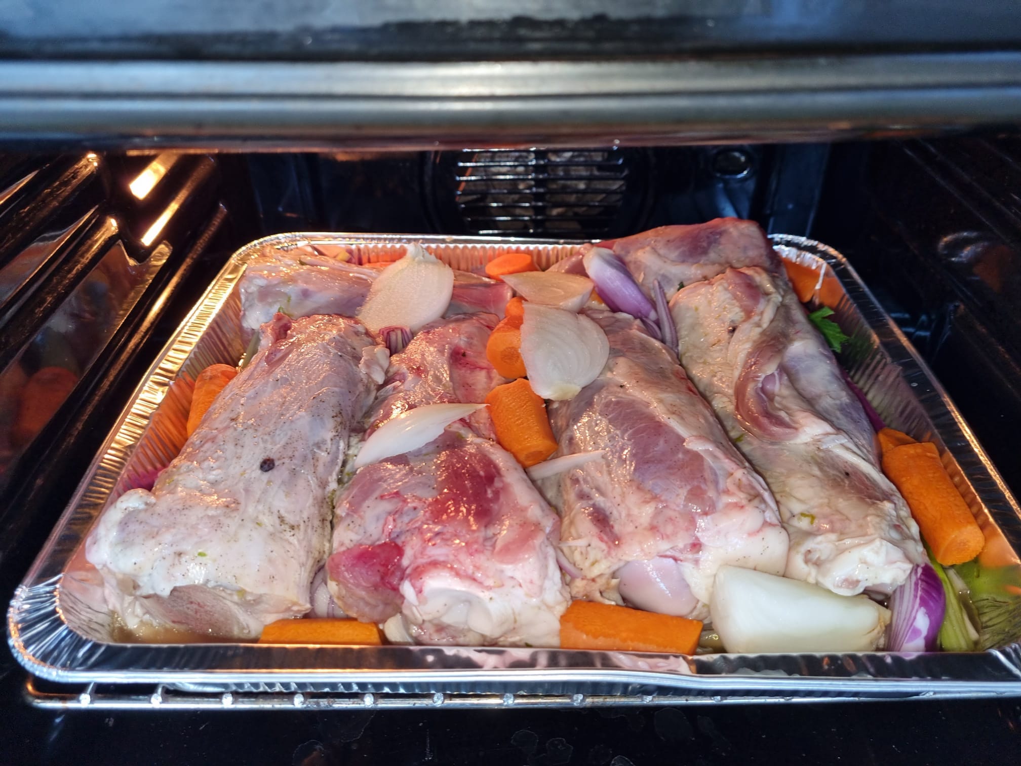 Φτιάχνουμε τι μαρινάδα και ρίχνουμε μέσα το κότσι και το ανακατεύουμε και το αφήνουμε όλο το βράδυ σκεπασμένο με μεμβράνη,