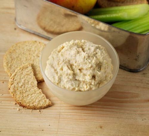 Αδειάστε τα ρεβίθια σε ένα κόσκινο τοποθετημένο πάνω σε ένα μπολ ή κανάτα για να μαζέψετε τα υγρά. Ρίξτε τα ρεβίθια, ταχίνι, σκόρδο και γιαούρτι σε επεξεργαστή τροφίμων ή μπλέντερ και χτυπήστε τα για να δέσουν καλά.