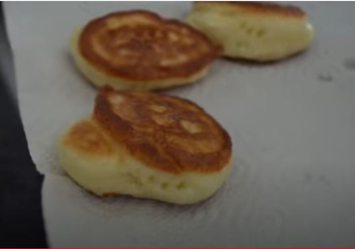 Τηγανίζουμε 3 λεπτά από κάθε πλευρά και τις βγάζουμε τις τηγανίτες σε μία χαρτοπετσέτα.