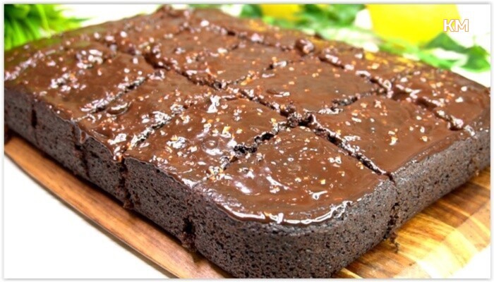 Λιώνουμε τη σοκολάτα και περιχύνουμε το κέικ. Μπορείτε να το κόψετε το κέικ, να το αφήσετε να κρυωσει και θα πάρετε ένα πολύ νόστιμο κέικ.