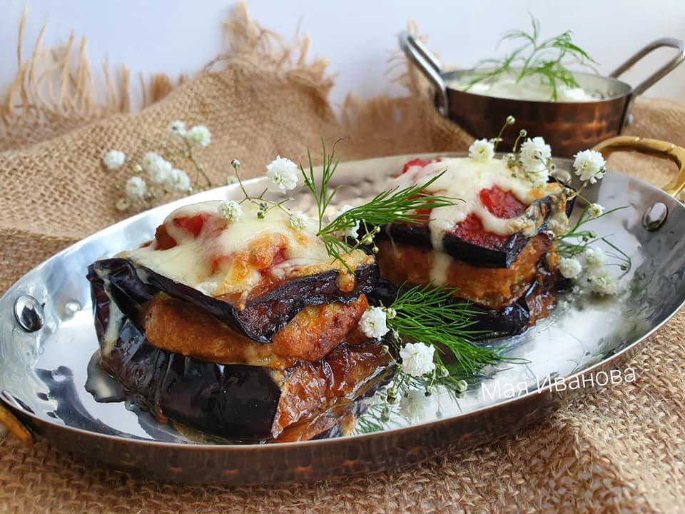 Κόβουμε κατά μήκος 3 μεγάλες μελιτζάνες σε φέτες και τις τηγανίζουμε σε ένα τηγάνι. Αφαιρούμε και τοποθετούμε σε χαρτί κουζίνας, αλατίζουμε.