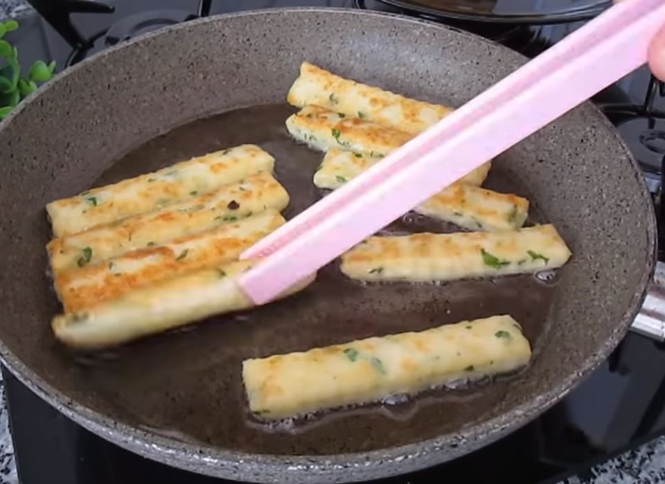 Ρίχνουμε το λάδι στο τηγάνι και μόλις ζεσταθεί τηγανίζουμε τα μπουρεκάκια μας και από τις 2 πλευρές μέχρι να ροδίσουν.