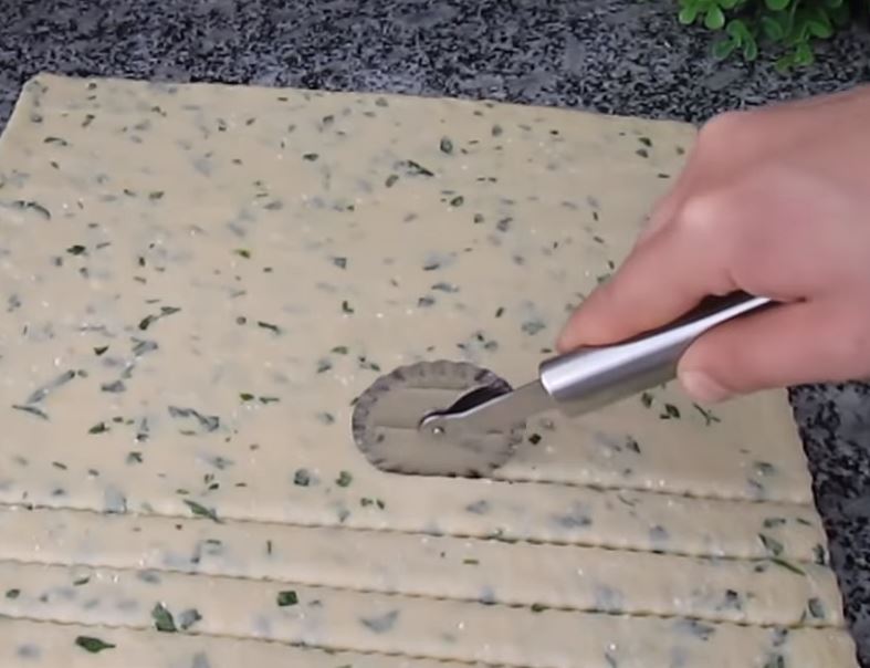 Κόβουμε κατά μήκος σε λωρίδες και μετά την κάθε λωρίδα στα 3.