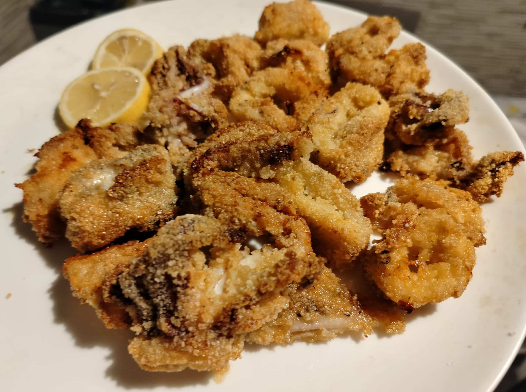 Βουτήξτε τα καλαμάρια σε αυτή τη φρυγανιά, φροντίζοντας να κολλήσουν καλά.