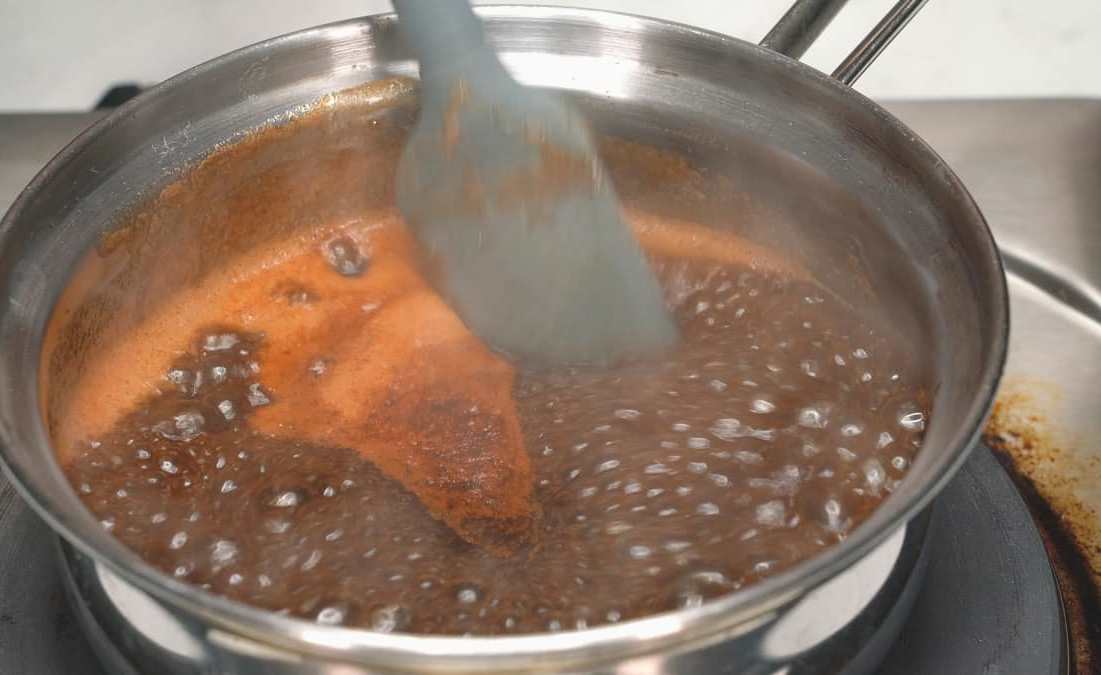 Σε μέτρια φωτιά, μαγειρέψτε τα υπολείμματα της μαρινάδας σε μία κατσαρόλα για περίπου 10 λεπτά μέχρι να πήξει ελαφρώς