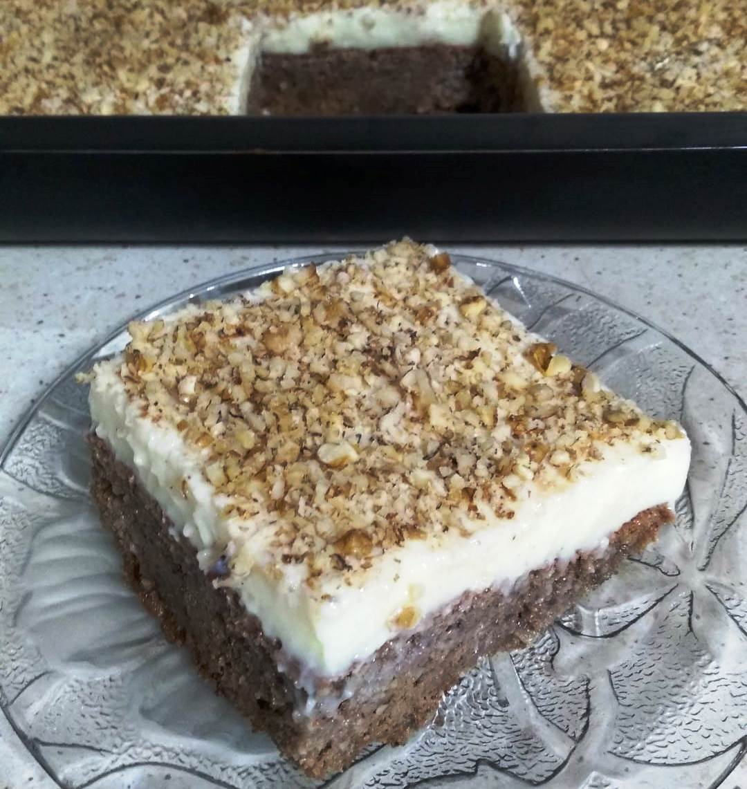 Η κρέμα είναι βελούδινη και απαλή, και σε συνδυασμό με τη βάση καρυδιών δημιουργεί ένα τέλειο γλυκό.