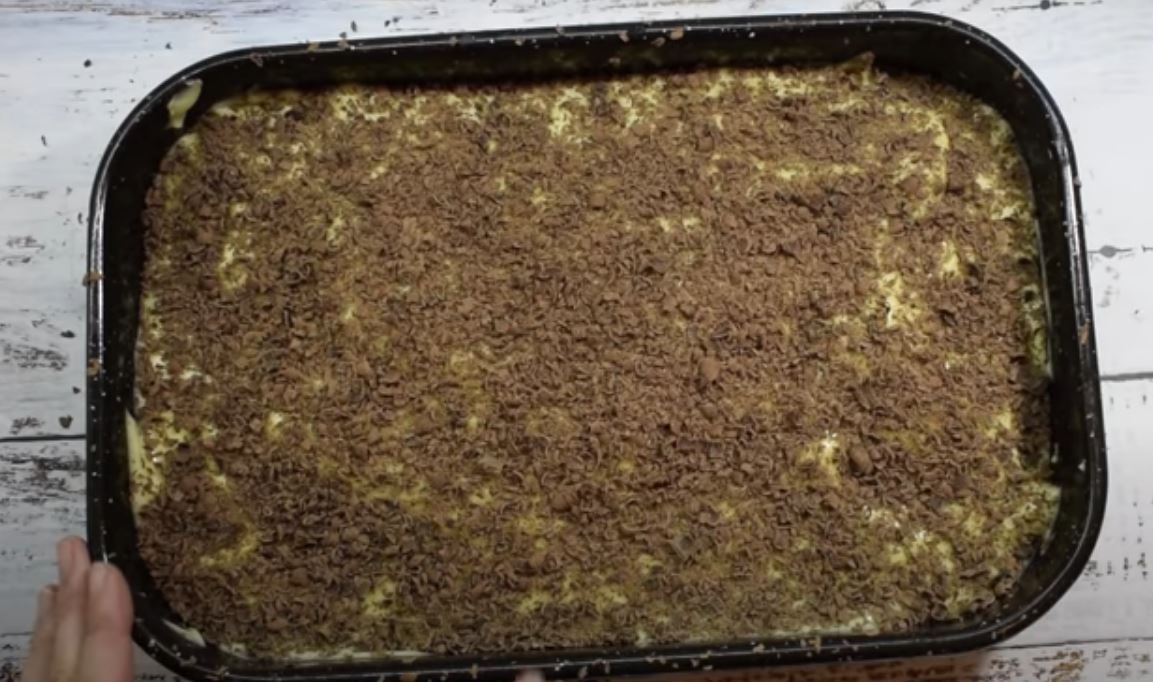 Μετά από αυτό μπορείτε να τρίψετε λίγη σοκολάτα. Χρησιμοποίησα σοκολάτα, αλλά εάν δεν έχετε σοκολάτα, μπορείτε επίσης να πασπαλίζετε με αλεσμένα καρύδια.