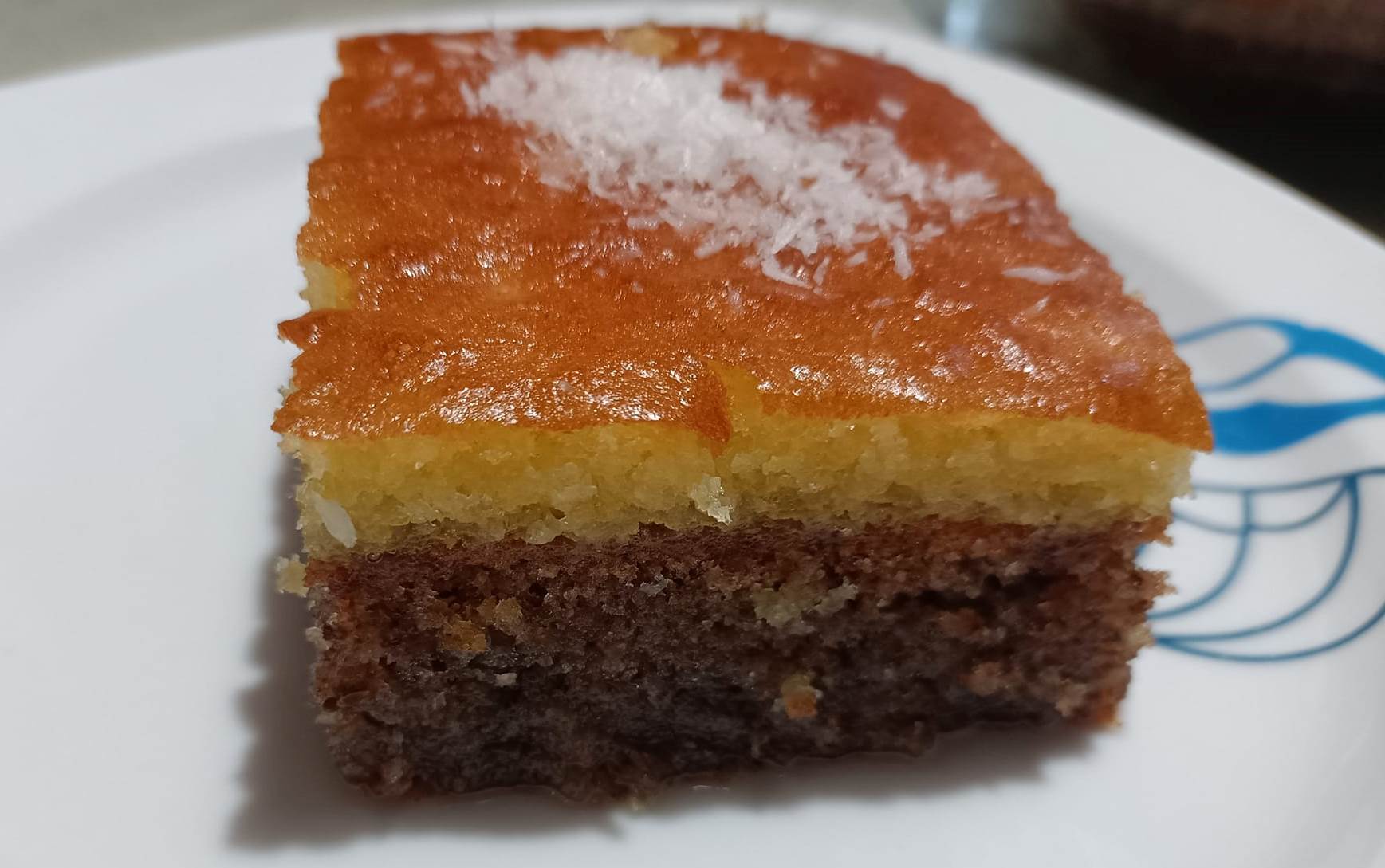 Βγάζω την καρυδόπιτα από το φούρνο και ρίχνω το ρεβανί μου και ψήνω 25 λεπτά ακόμα στους 175 αέρα