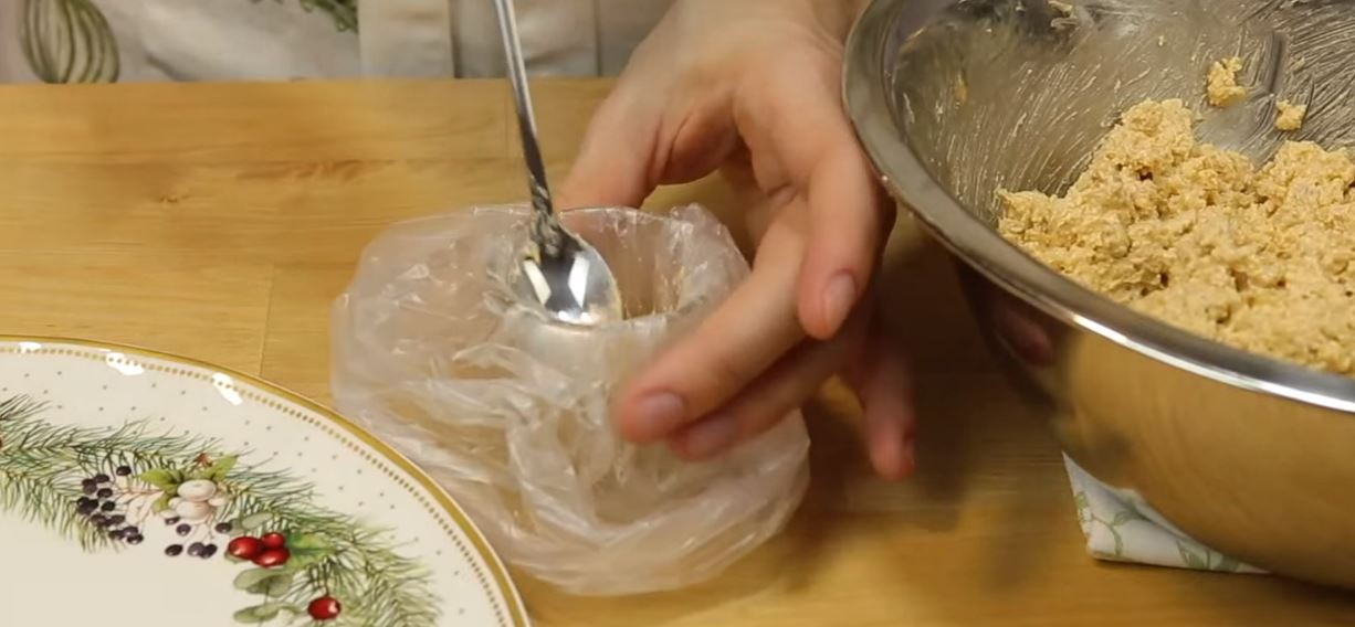 Τοποθετούμε μία καρυδόψυχα από πάνω ασκώντας ελαφριά πίεση.
