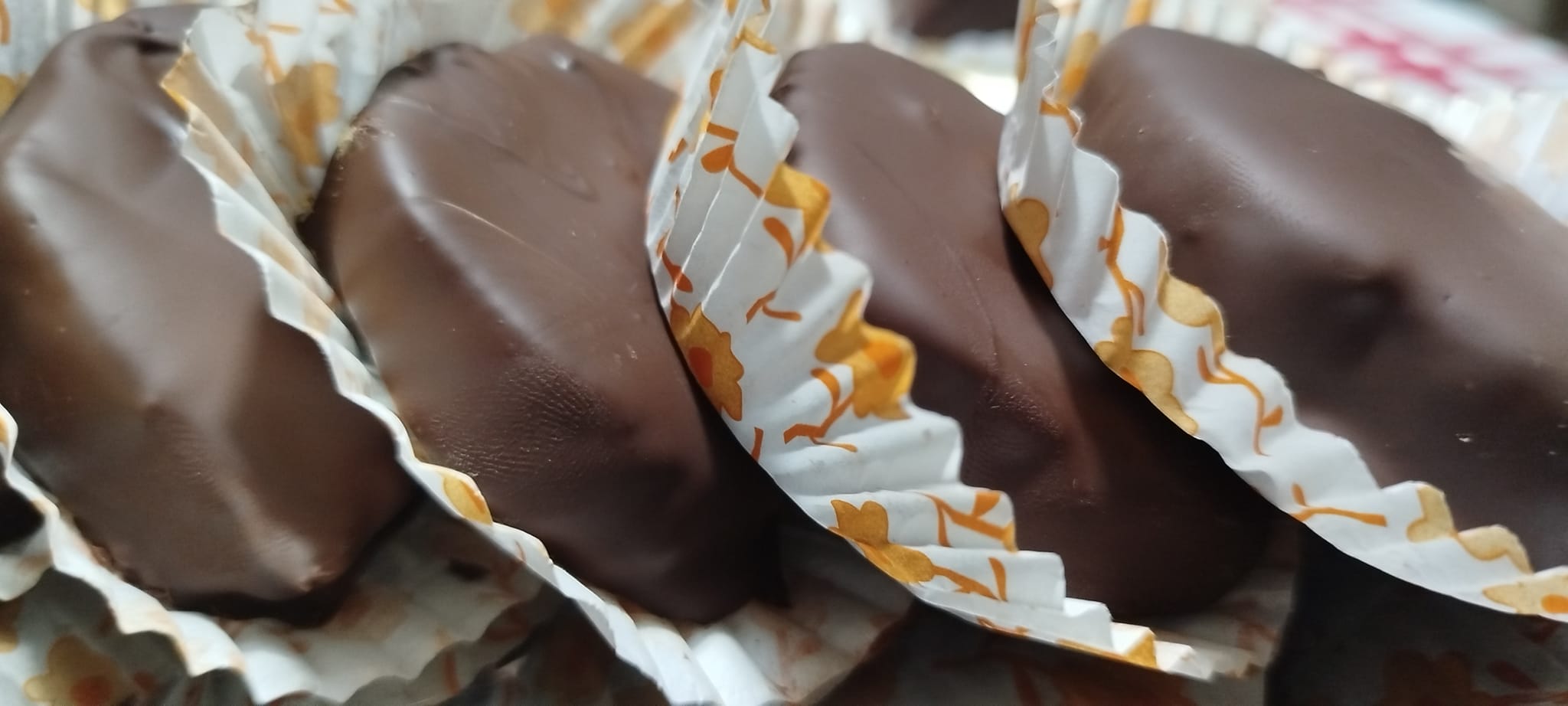 Φροντίζουμε η κουβερτούρα να είναι αρκετή για να καλύψει πλήρως τις καριόκες.