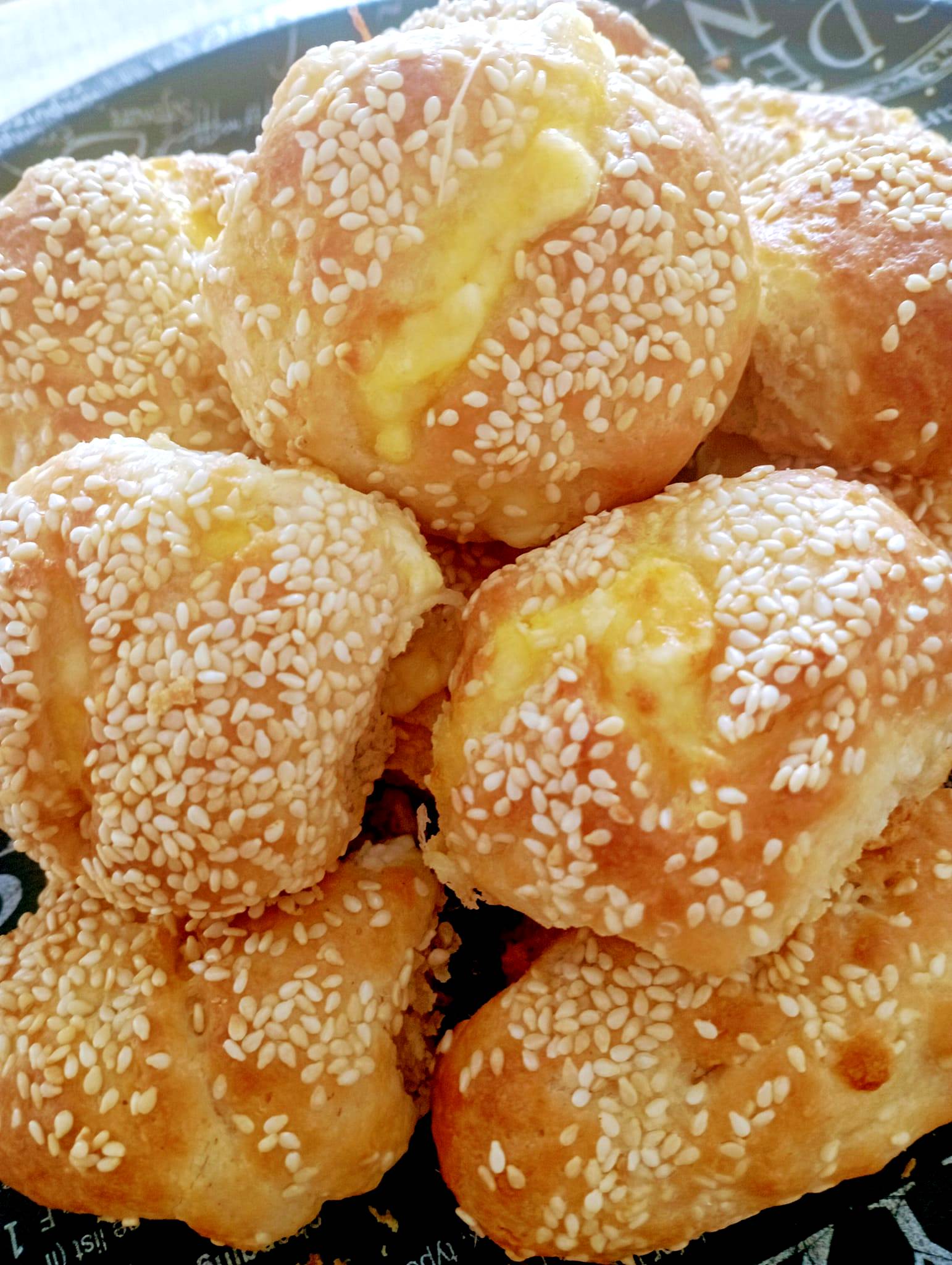 Μόλις τα πλάσουμε όλα, τα περνάμε με τον κρόκο του αβγού και πασπαλίζουμε με μπόλικο σουσάμι.