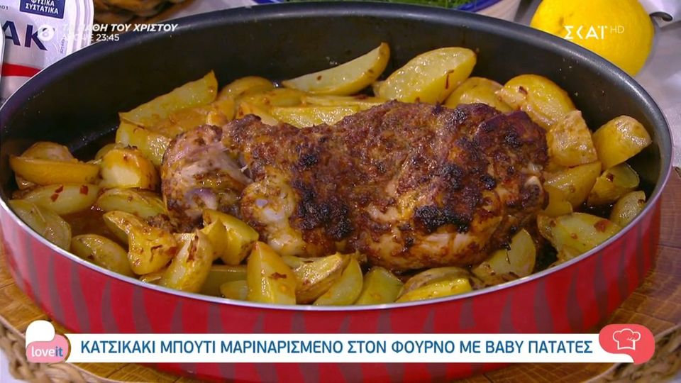 Το κατσικάκι μπούτι μαριναρισμένο στο φούρνο με baby πατάτες είναι ένα παραδοσιακό ελληνικό φαγητό που είναι τόσο νόστιμο όσο και εύκολο στην παρασκευή. Η μαρινάδα του δίνει στο κρέας μια πλούσια και αρωματική γεύση, ενώ οι baby πατάτες ψήνονται ομοιόμορφα και γίνονται τραγανές εξωτερικά και μαλακές εσωτερικά.