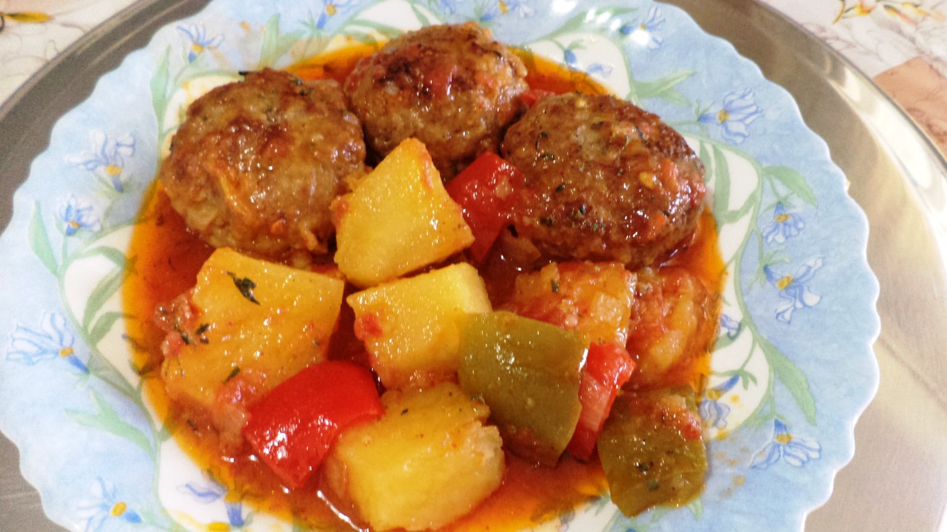Αφού βράσουν, προσθέτουμε τις πατάτες σε φέτες και μετά από 10 λεπτά προσθέτουμε τους κεφτέδες.
