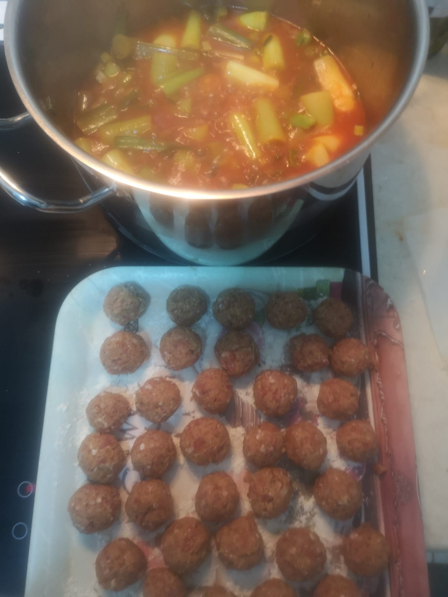 Ζυμώνω τα υλικα για τα κεφτεδάκια καλά πλάθω μικρά κεφτεδακια και τα αλευρωνω.