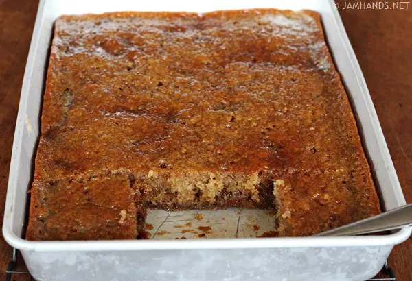 Ρίξτε το κουρκούτι σε βουτυρωμένο ταψί 22 x 33 εκ και ψήστε για 35 έως 40 λεπτά. Προσοχή να μην ψηθεί υπερβολικά.