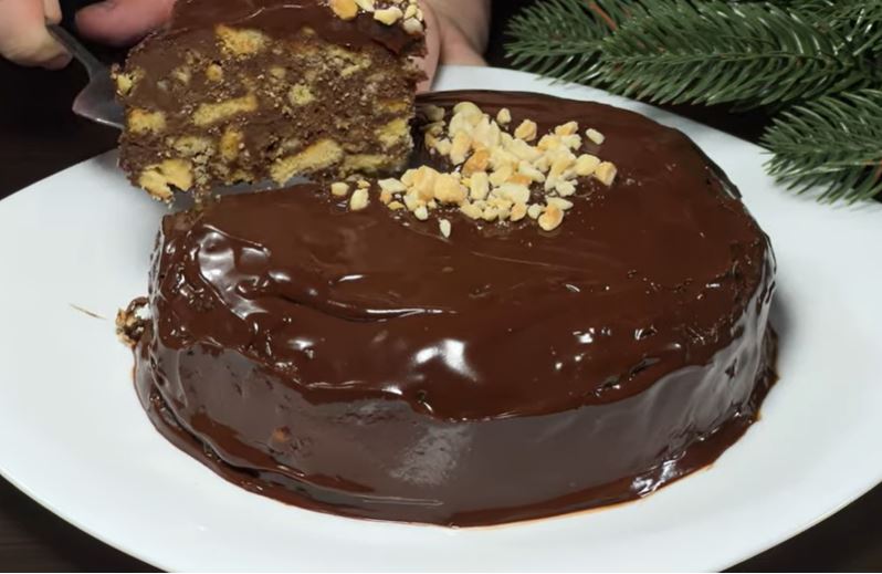 Σπάμε σ ένα μπολ με τα χέρια μας τα μπισκότα σε μικρά κομμάτια.Σ ένα κατσαρολάκι βάζουμε το γάλα, τη ζάχαρη,το κακάο και ανακατεύουμε καλά με το σύρμα να ενωθούν τα υλικά.