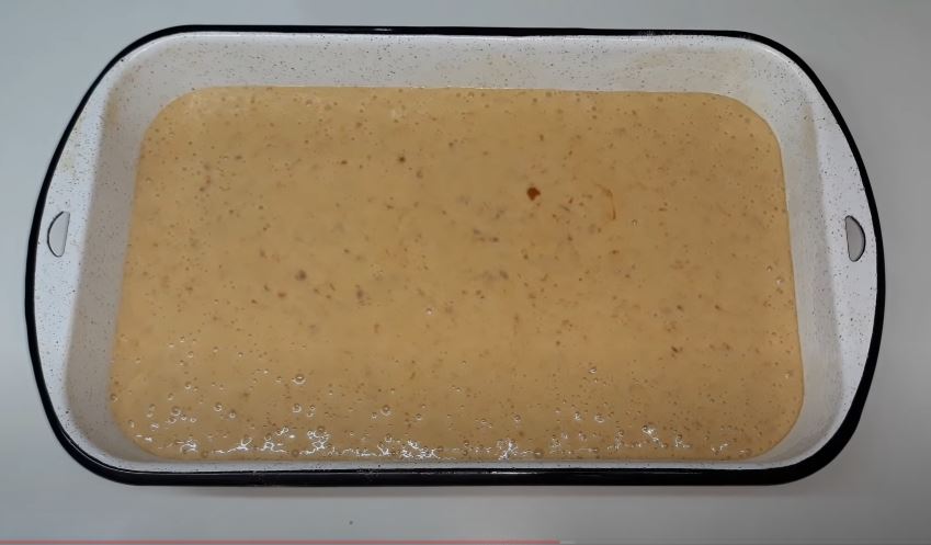 Αδειάζουμε το μείγμα σε ένα βουτυρωμένο ταψί