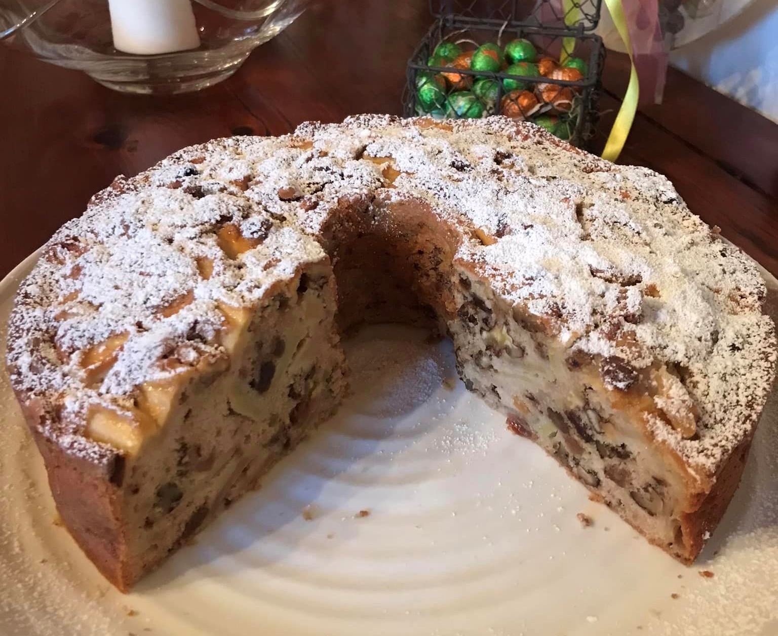 Μπαχαρικά: Για να γίνει το κέικ πιο αρωματικό και να ταιριάξει με τα μήλα και τα καρύδια , προσθέστε 1 κουταλάκι γλυκού κανέλα και μισό κουταλάκι γλυκού μοσχοκάρυδο μαζί με το αλεύρι.
