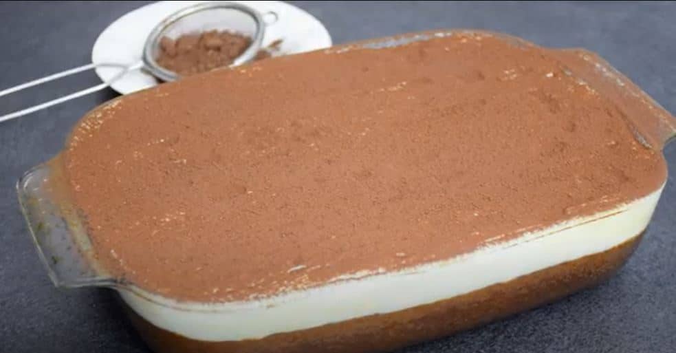 Πασπαλίζω με κακάο και βάζω το κέικ στο ψυγείο για τουλάχιστον 1 ώρα, για να παγώσει καλά.